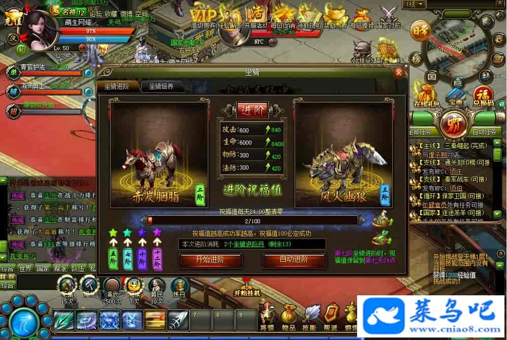 修复坐骑,翅膀,武将 不能进阶。