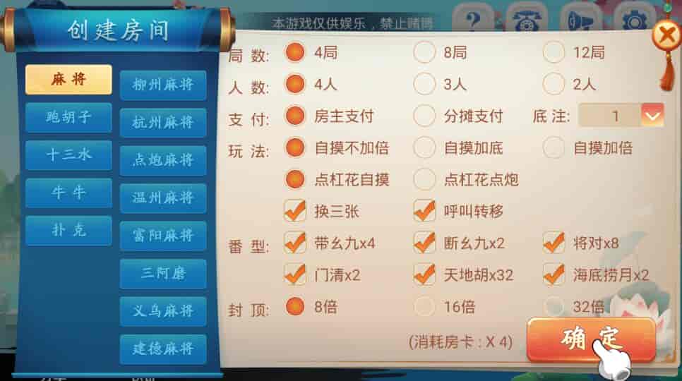 游戏有麻将、跑胡子、十三水、牛牛和扑克,自己拿去搭建测试。