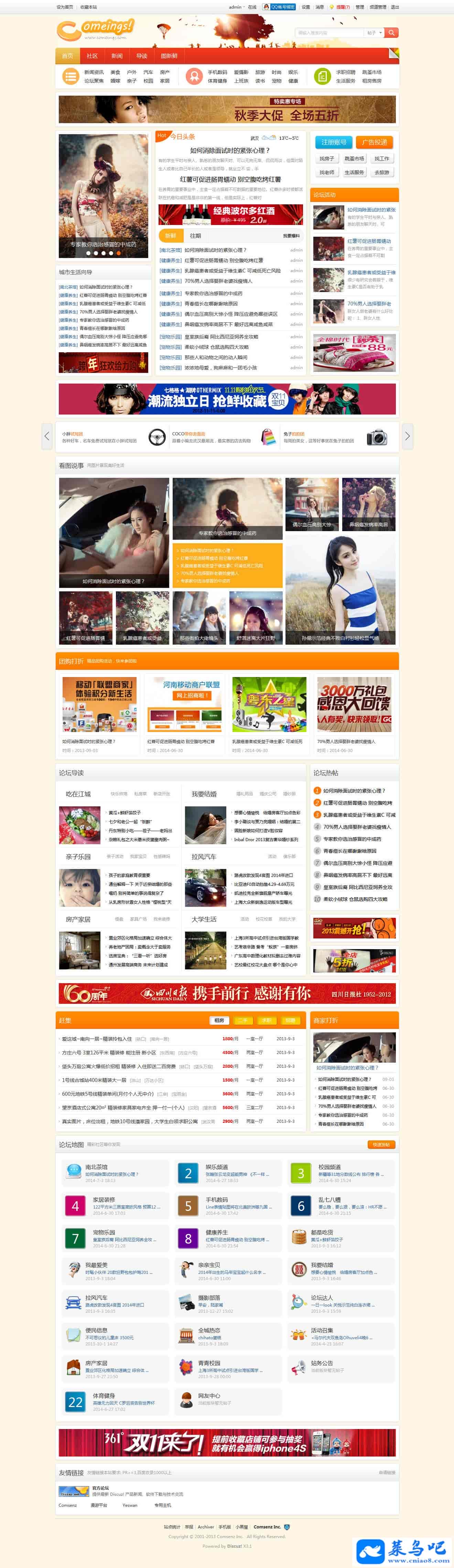 Comeing首创频道模块化,购买comeing模板可以有更多的首页和频道可供选择;