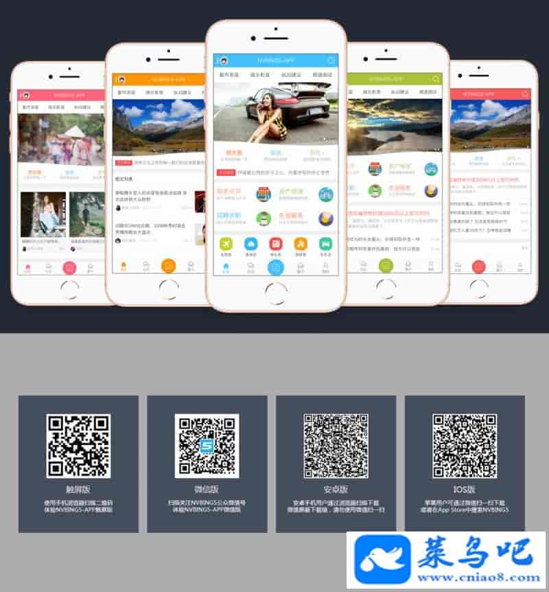 功能亮点:一套模版可生成触屏版、微信版、安卓版、IOS版*支持视频上传至优酷云或本地服务器,首页、列表页、内容页视频、MP3解析播放*支持手机短信登录、注册、找回密码、绑定、认证发帖回帖10种版块样式:朋友圈、新闻、图库、视频、教程、分享、文章、大图文章、娱乐等十几种DIY模块(不断更新),快捷快速的打造属于自己的个性移动互联网产品2种社区模式,可通过管理插件便捷切换TAB样式、普通列表样式模版采用全局图片延时加载功能,可大大降低服务器负担,提升网站速度支持向下滑动隐藏头部、尾部菜单,给内容以更多的展示空间*10套空间风格、6种整站配色,给予用户、站长更多的个性化选择*12种分类信息,同时兼容电脑版手机版,支持一键拨号、手机发布分类信息发帖插入表情、@朋友、文字链接、网络图片、MP3音乐、网络视频、Flash、引用、代码、免费信息、标签;发帖设置抢楼贴、收费帖、匿名发帖、作者可见、回帖倒叙、回复通知、生成广播支持非管理用户组编辑主题、编辑回复功能支持悬赏主题手机版采纳最佳答案