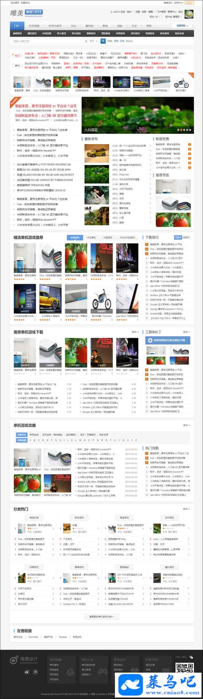 适用范围:程序作为门户非常简洁漂亮,科技类和游戏类首选的程序,discuz的门户!