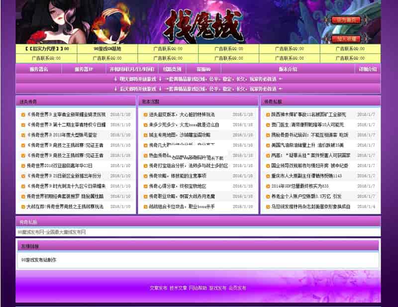 2021年紫色诱惑魔域发布站程序源码是一个以asp+access进行开发的网页游戏私服发布网。