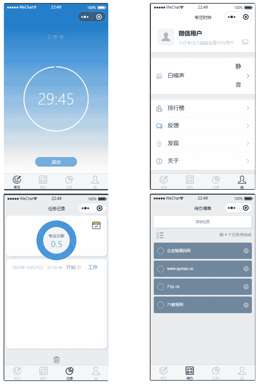 集每日待办、专注计时、打卡、备忘、自习、白噪声等多种实用功能于一体,助你轻松将每一天打理得井井有条,享受高效生活。里面的雨声和田野需要替换下链接别的也没什么了