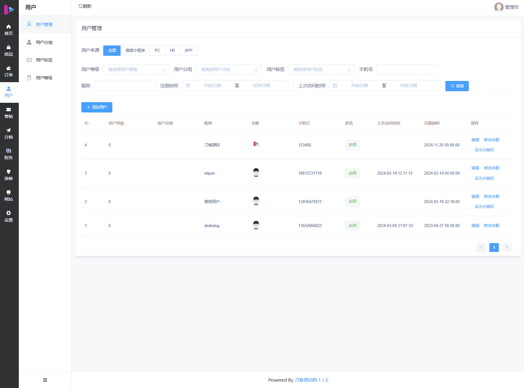 功能很齐全,支持 DIY 自定义前端界面,带一些数据成品站,支持秒杀和优惠券等营销功能,有分销功能