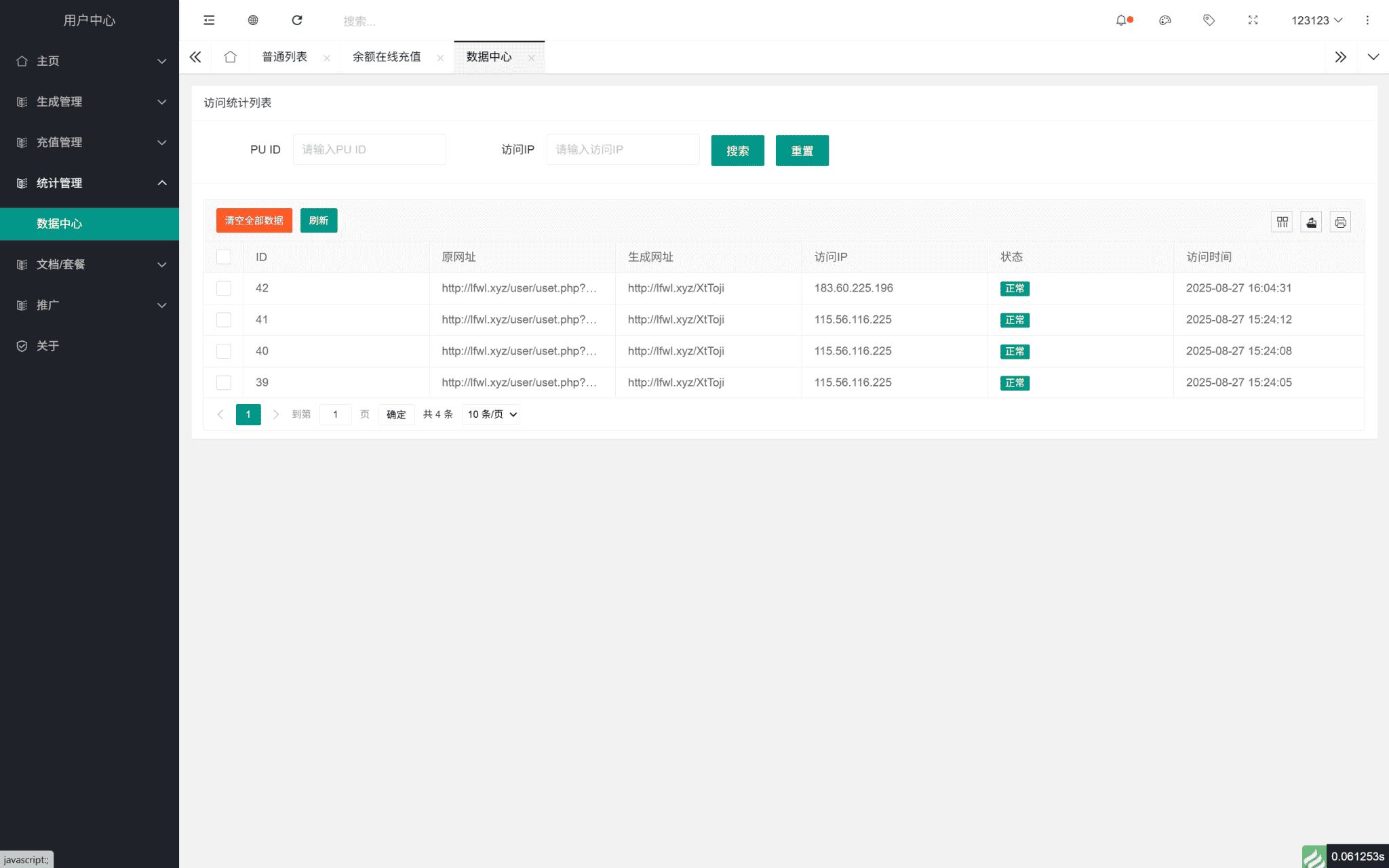 统计数据:可任意查看生成网址具体访问信息地址ip等内容