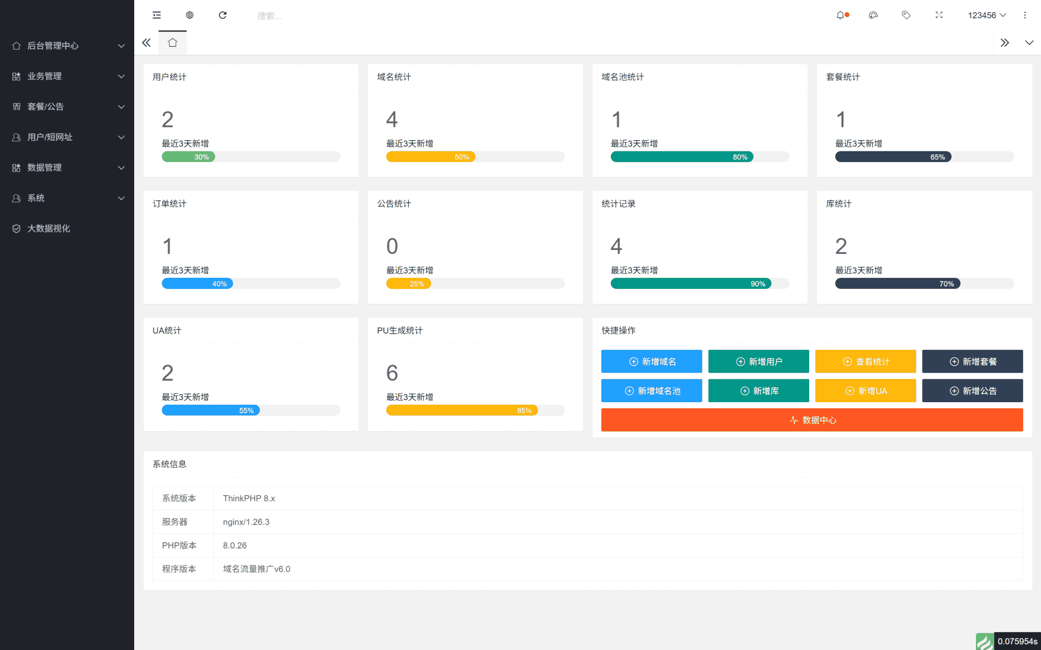 业务处理:网址生成[单次/批量生成,可选域名池,短网址,库Ua等自定义选择]数据化管理,统计每个生成的访问次数