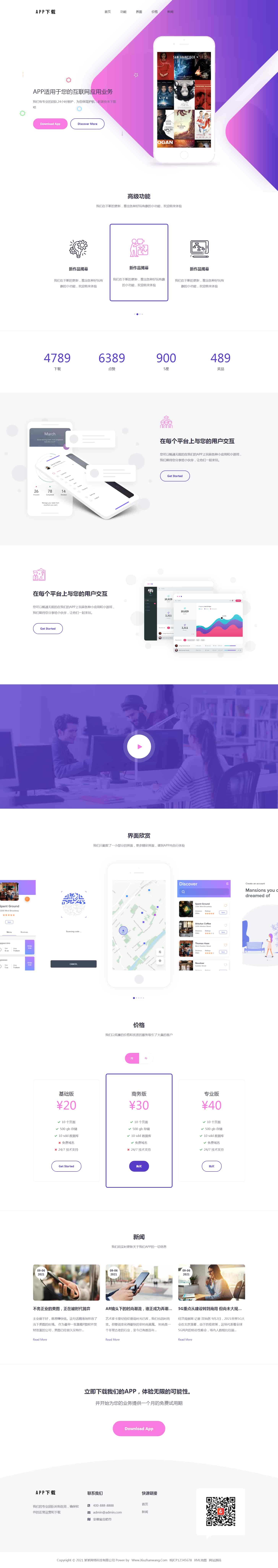 App软件落地页、软件推广宣传下载类织梦网站源码下载,基于织梦内核开发,UTF编码,安装简单,使用方便。