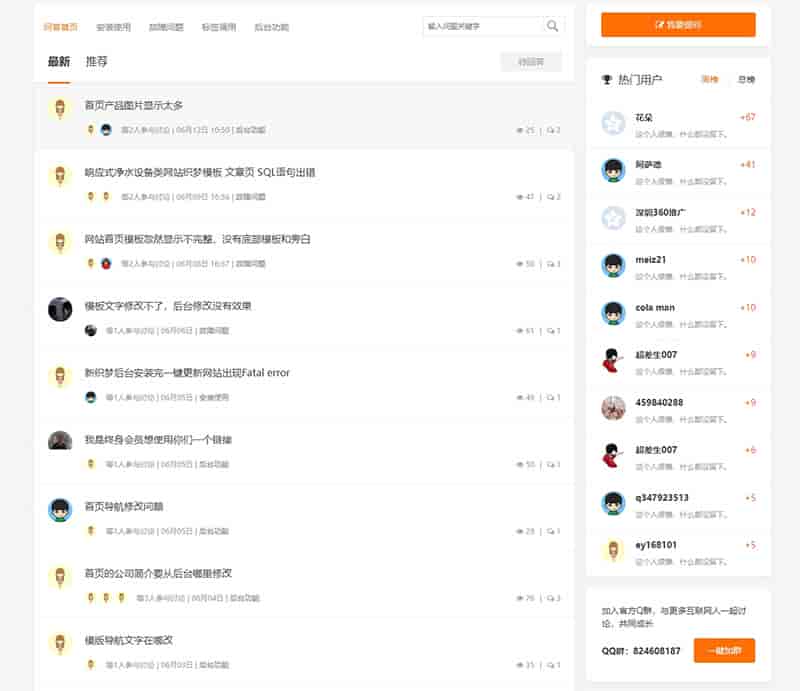 插件和我们官方的问答模块是一模一样的,可以看我们官方问答栏目的演示,是我们经过织梦官方问答二开美化后的,