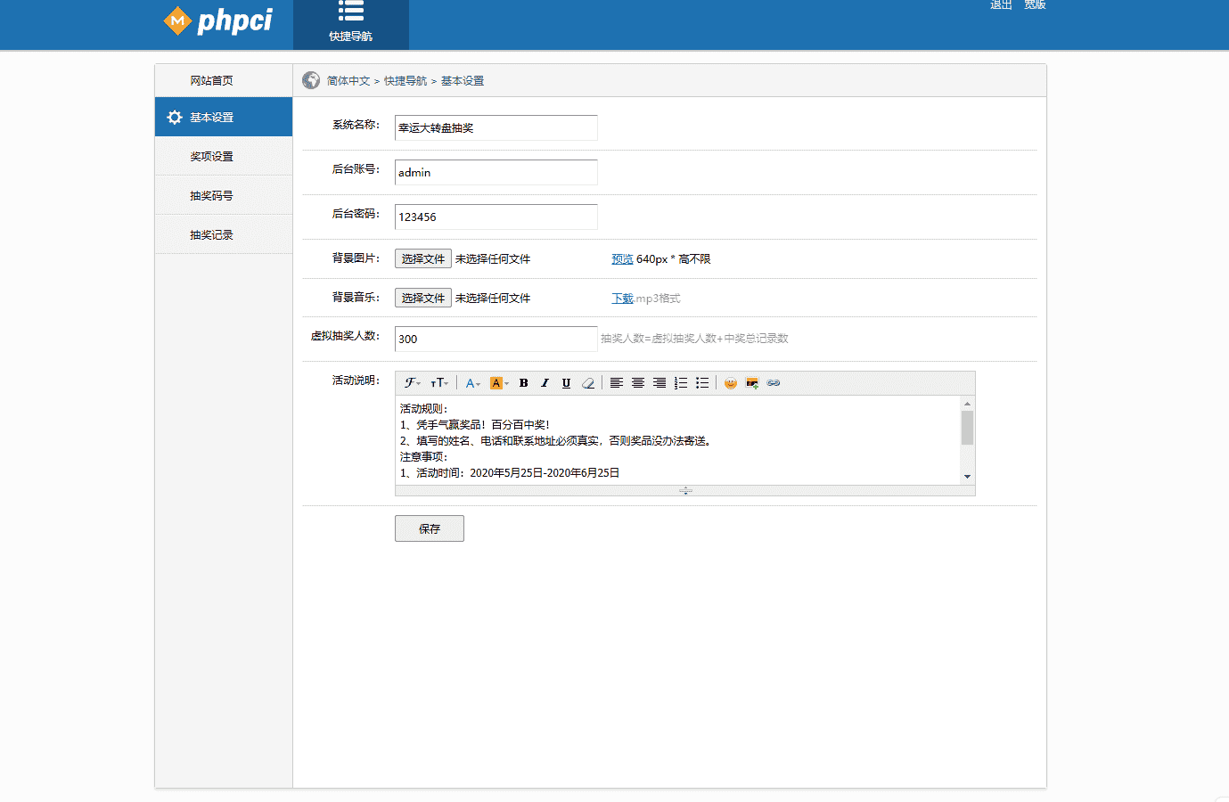 后台支持自定义抽奖背景、音乐、虚假购买人数