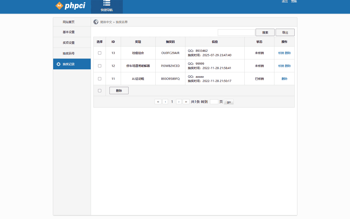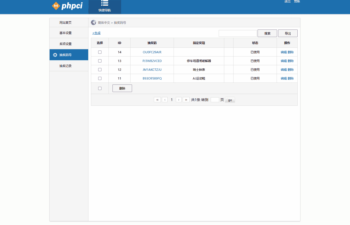 抽奖码只支持单个添加,无法批量,有能力的可以二开