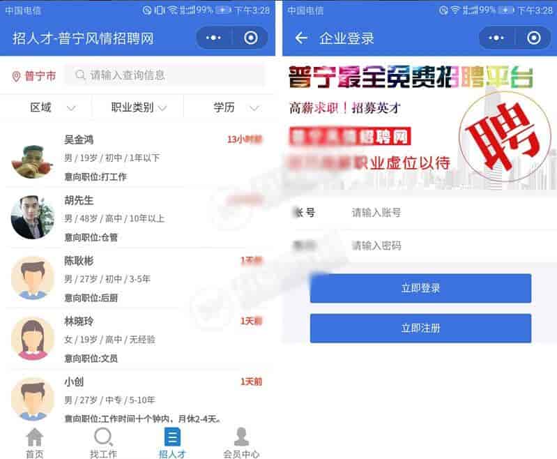 开源运营版 招聘系统源码 招聘求职小程序源码 支持在线报名参加招聘