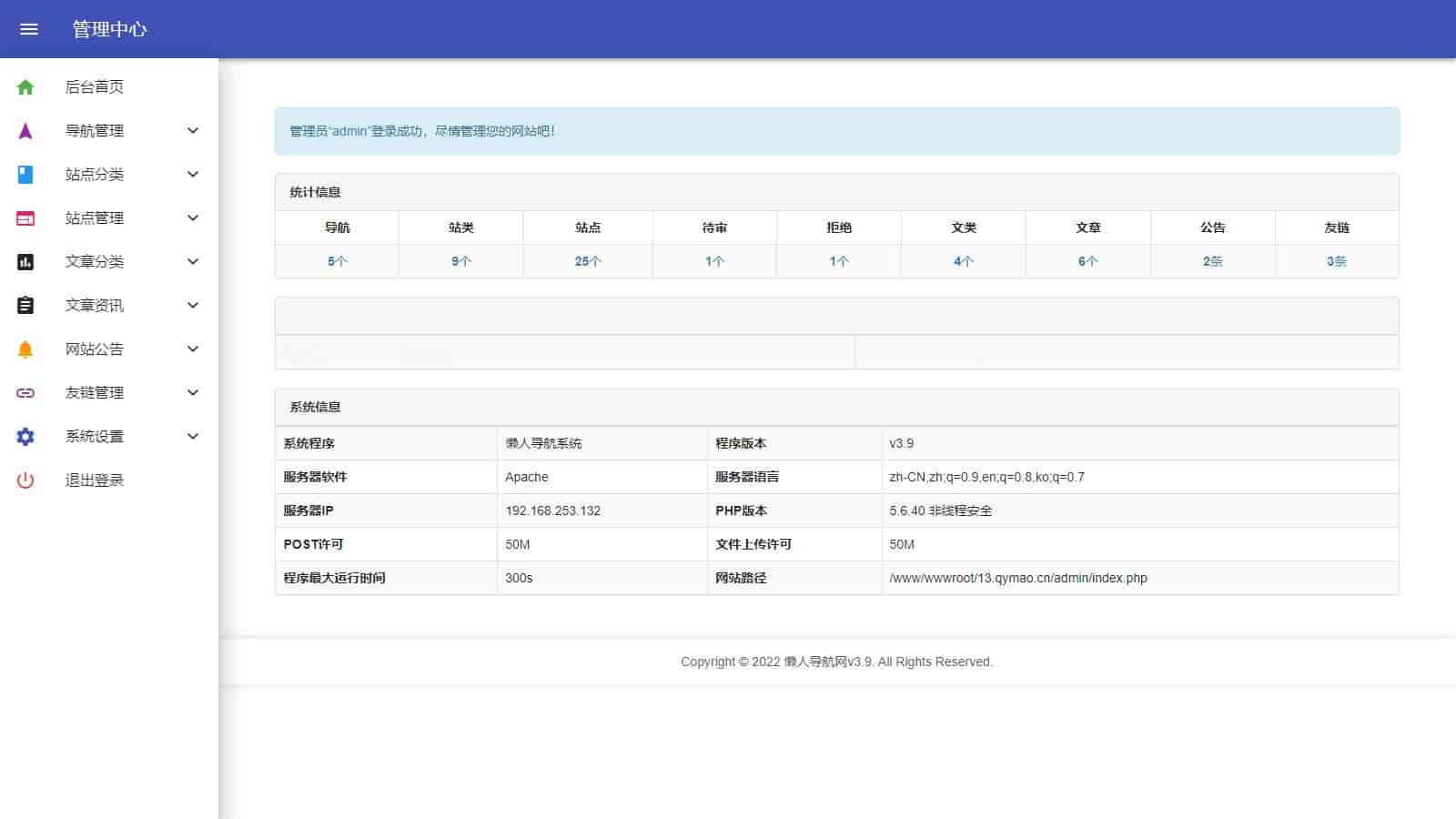 后台是:你的域名/admin/login.php 账号:admin 密码:qqqqqq