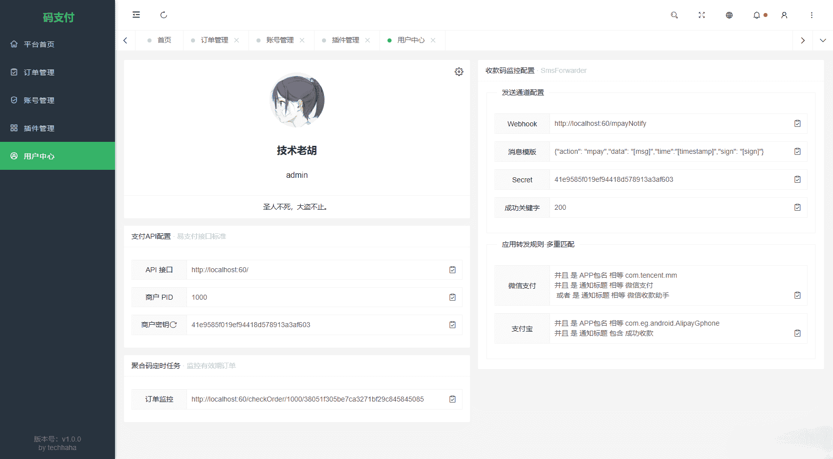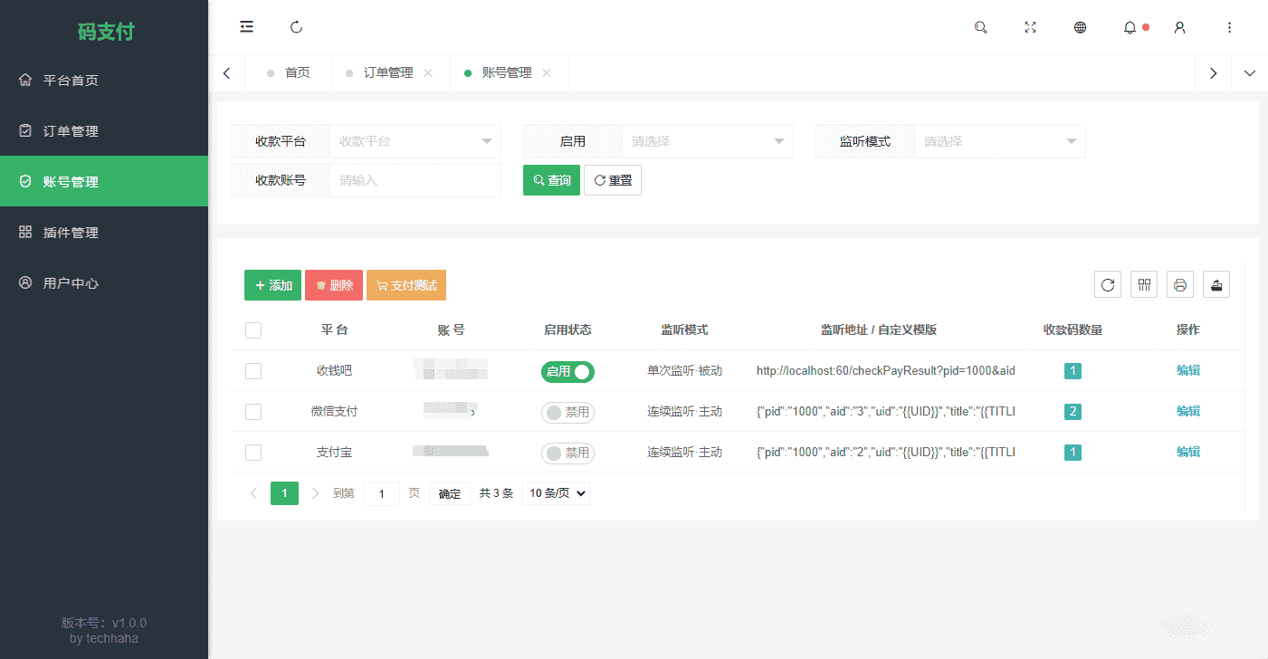 支持多平台、多账号、多通道,灵活配置,收款轮询