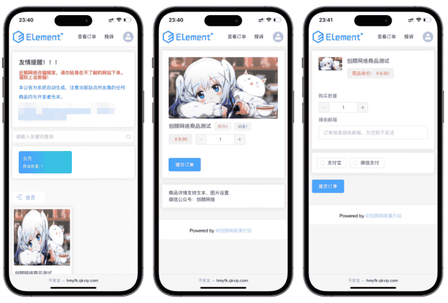 支持下单邮件通知,带投诉功能