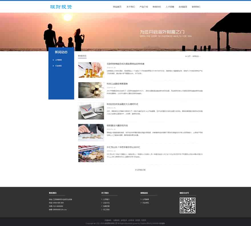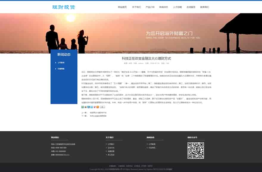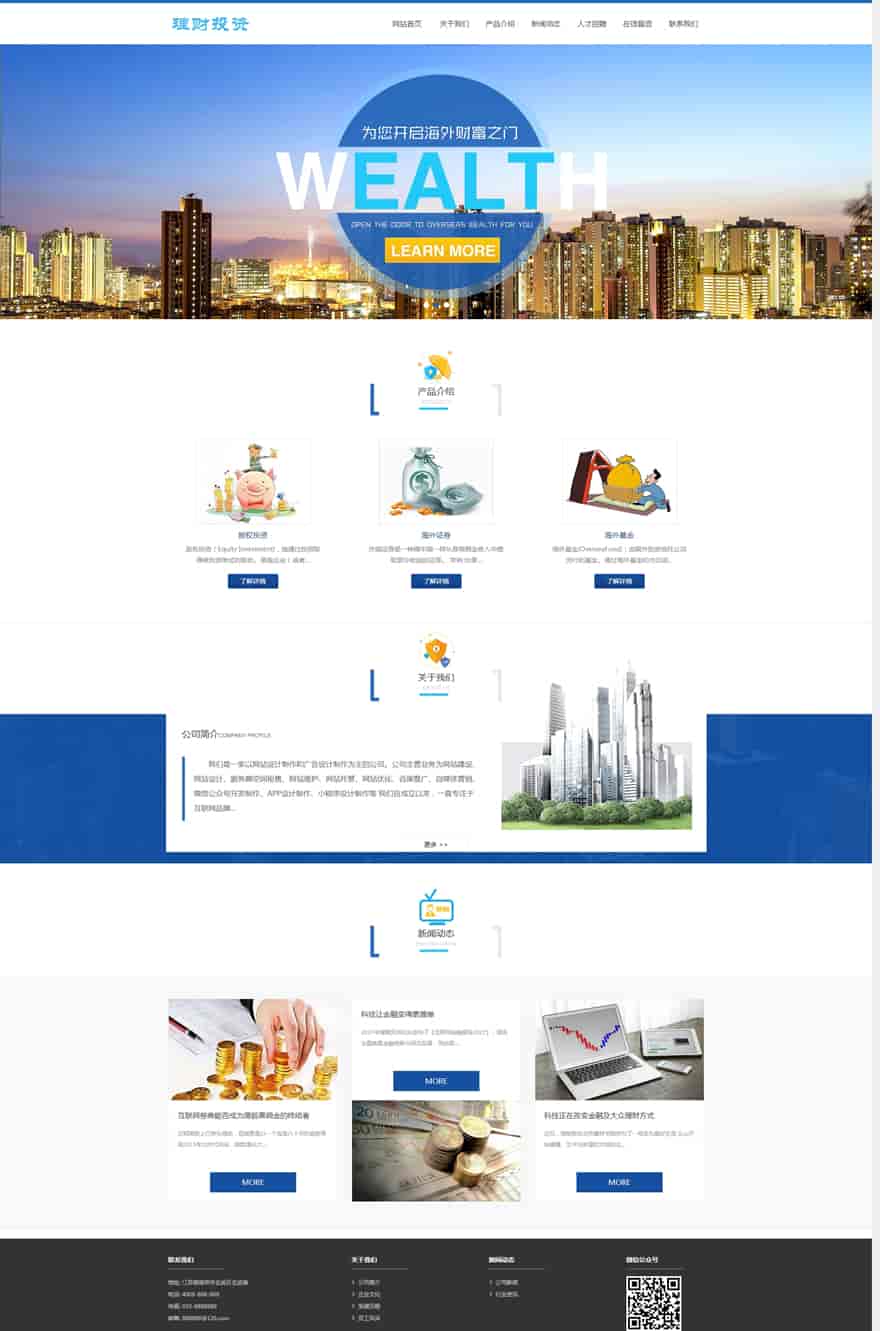 织梦最新内核开发的模板,该模板属于企业通用、HTML5响应式、海外投资、海外理财、投资管理、理财管理类企业使用,一款适用性很强的模板,基本可以适合各行业的企业网站!