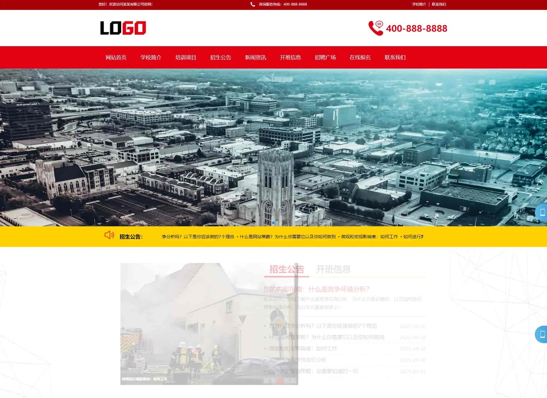 PbootCMS内核开发的网站模板,该模板适用于消防培训网站、培训机构网站等企业,当然其他行业也可以做,只需要把文字图片换成其他行业的即可;