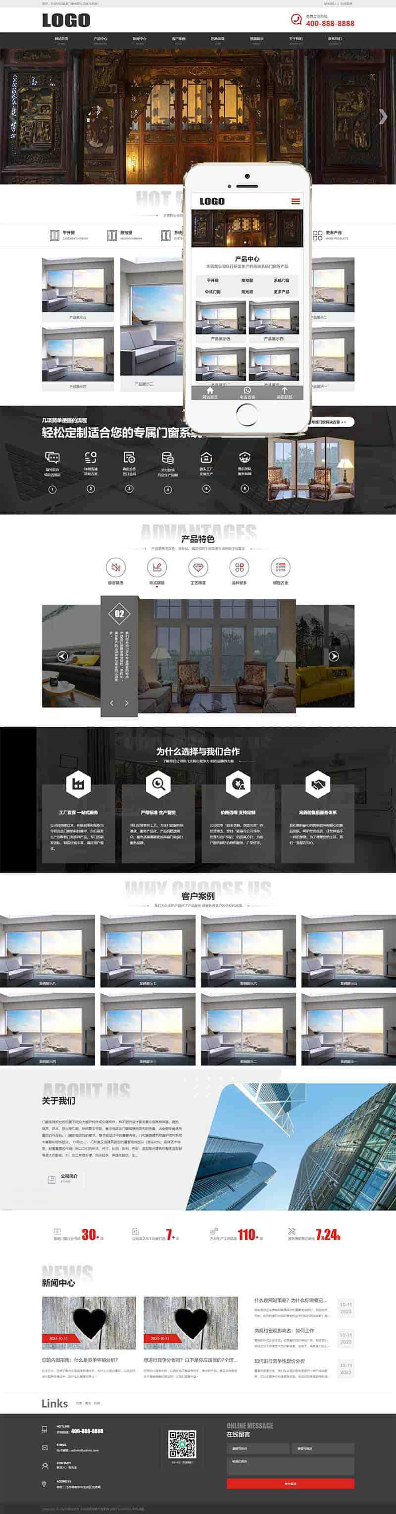 PbootCMS内核打造的网站模板,适用于门窗门业等企业,也可轻松适配其他行业,只需替换文字与图片即可;