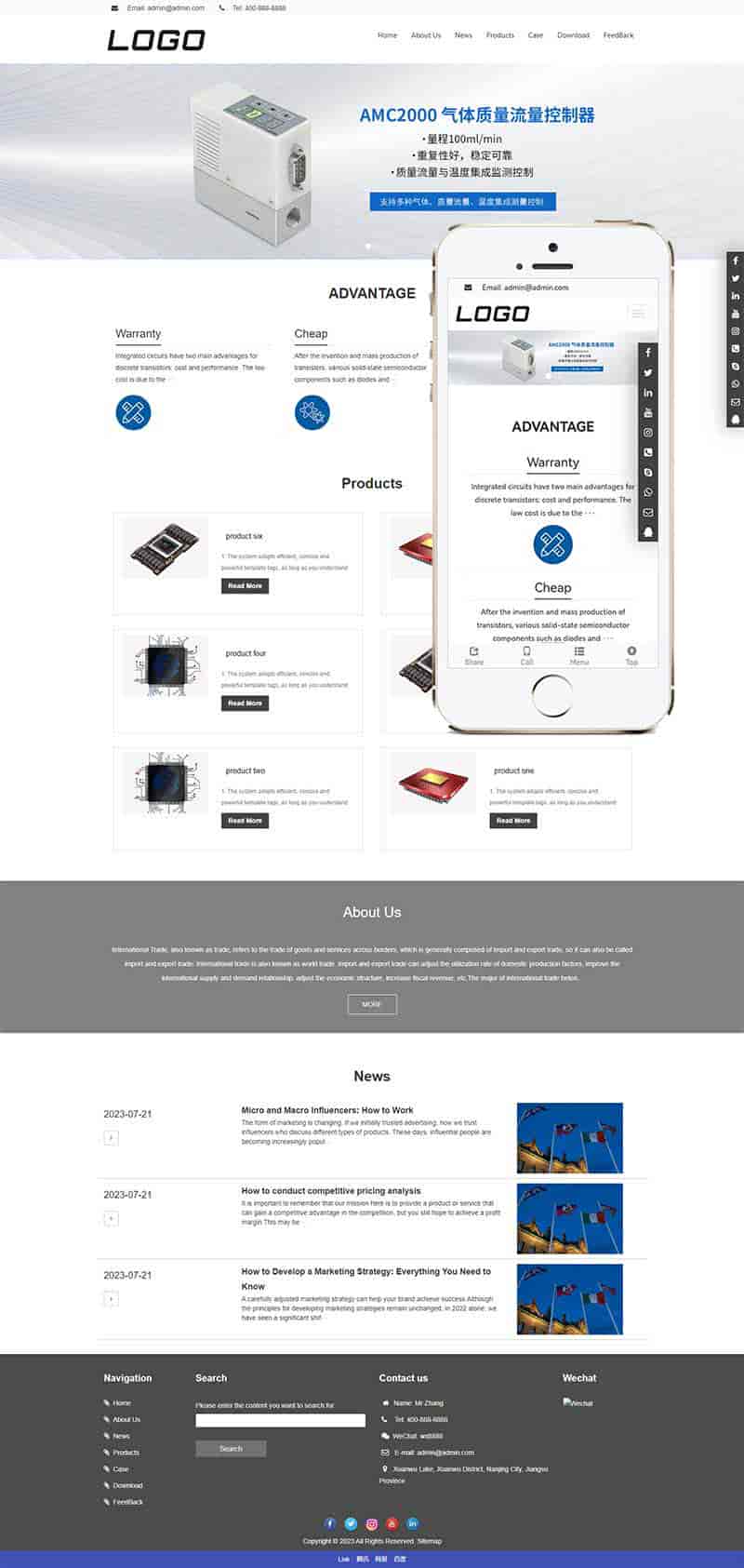 5:后台直接修改联系方式、传真、邮箱、地址等,修改更加方便。