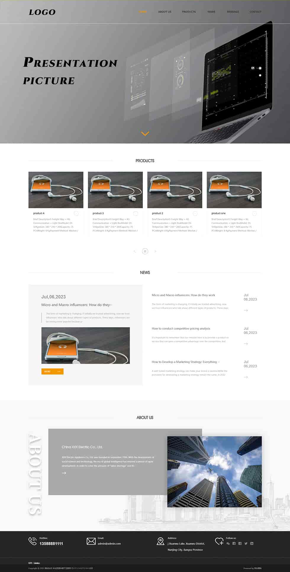 5:后台直接修改联系方式、传真、邮箱、地址等,修改更加方便。