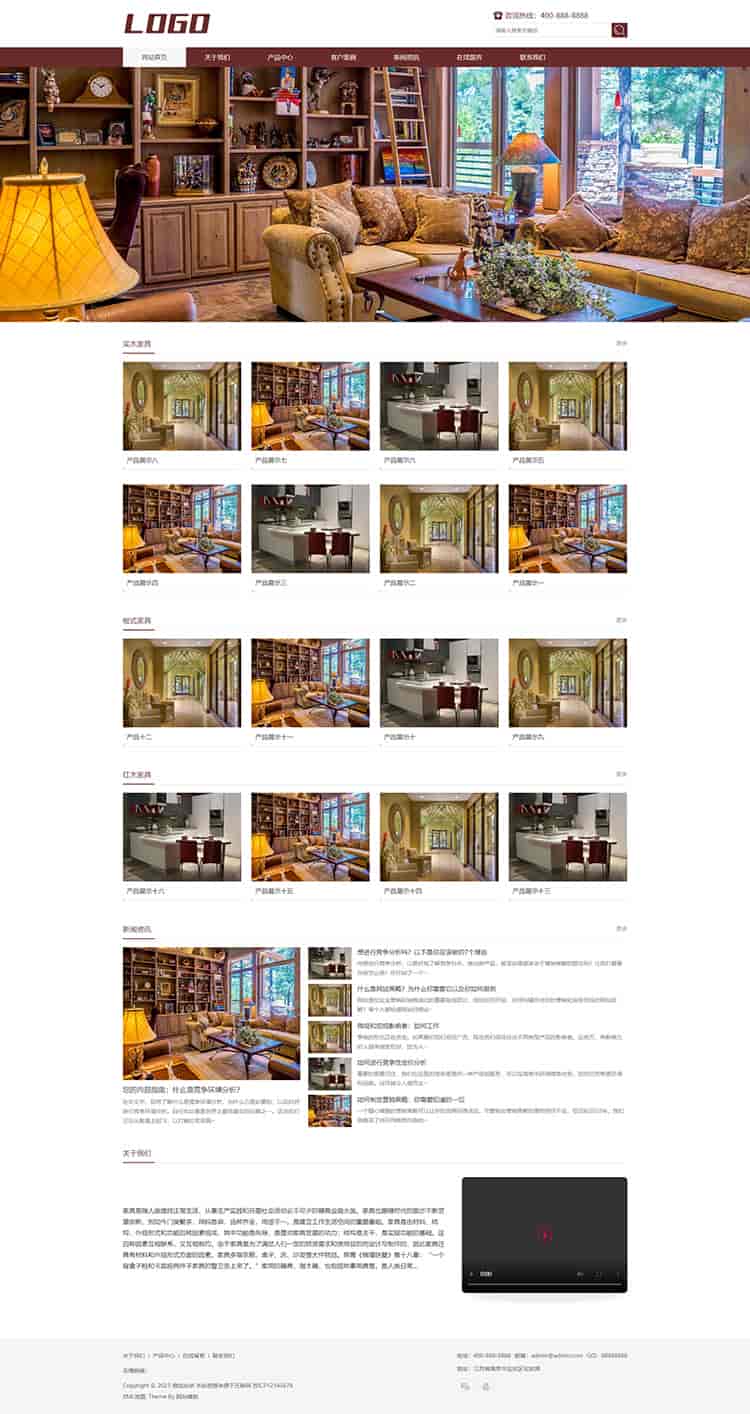 (自适应移动端)棕色家具装修pbootcms网站模板 响应式家具建材类网站源码下载