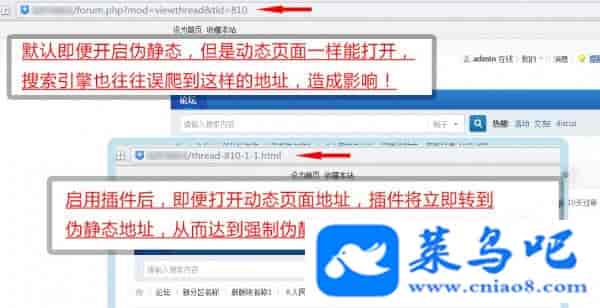 当您输入动态网址或者爬虫爬到帖子的动态地址时,插件会强制的自动把地址通过301方式转到伪静态地址,由于301是传递权重的,所以首先就把分散权重的问题解决了,把所有动态地址的权重集中到伪静态地址。