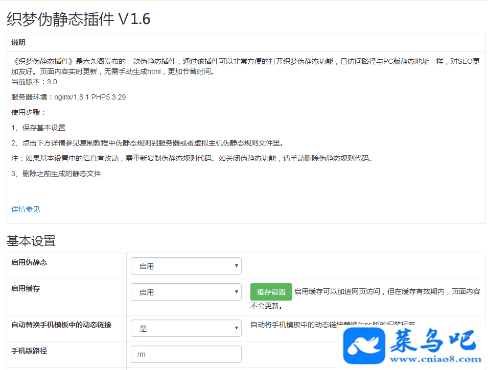 5、省去繁琐的配置伪静态,只需安装此插件,一键实现整站伪静态。