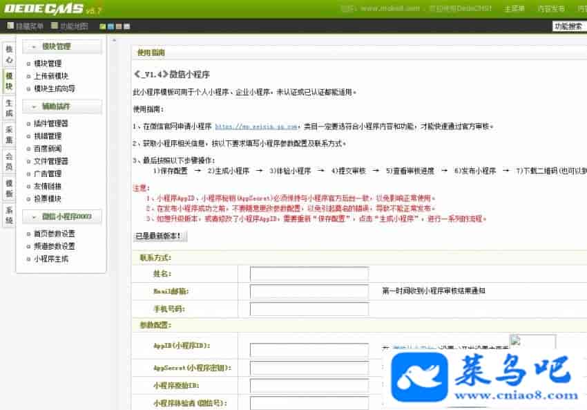 织梦微信小程序一键生成插件系统源码是织梦 58 发布的便于生成微信小程序的插件,让用户更方便生成企业/个人单页小程序