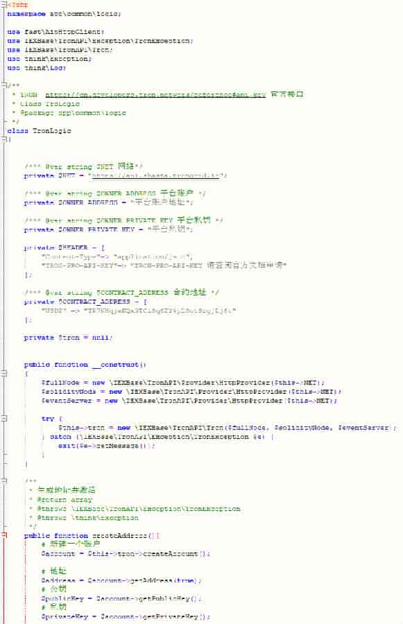 所有测试代码封装在 application common logic TronLogic.php中在,