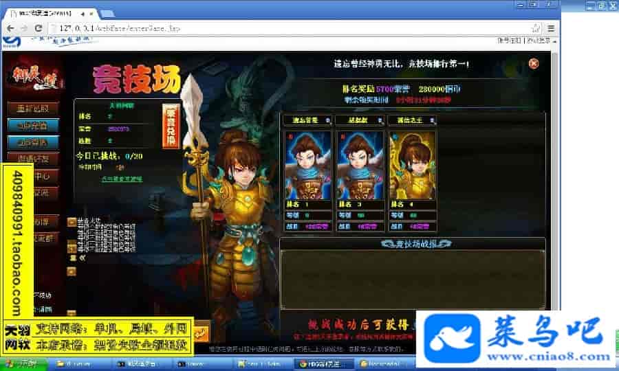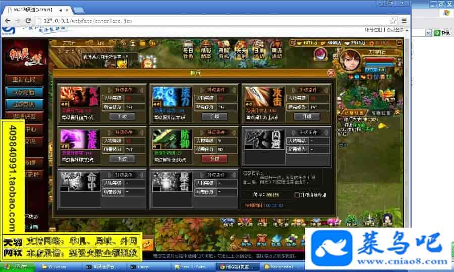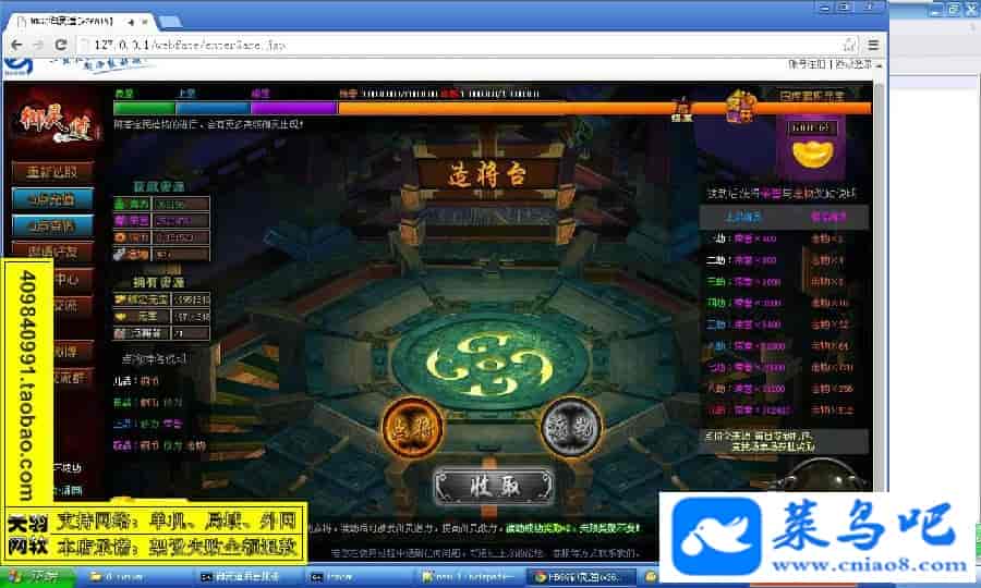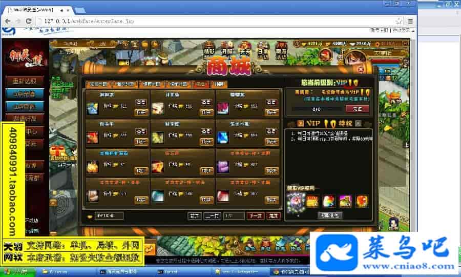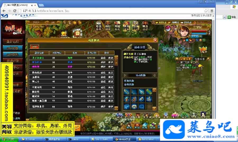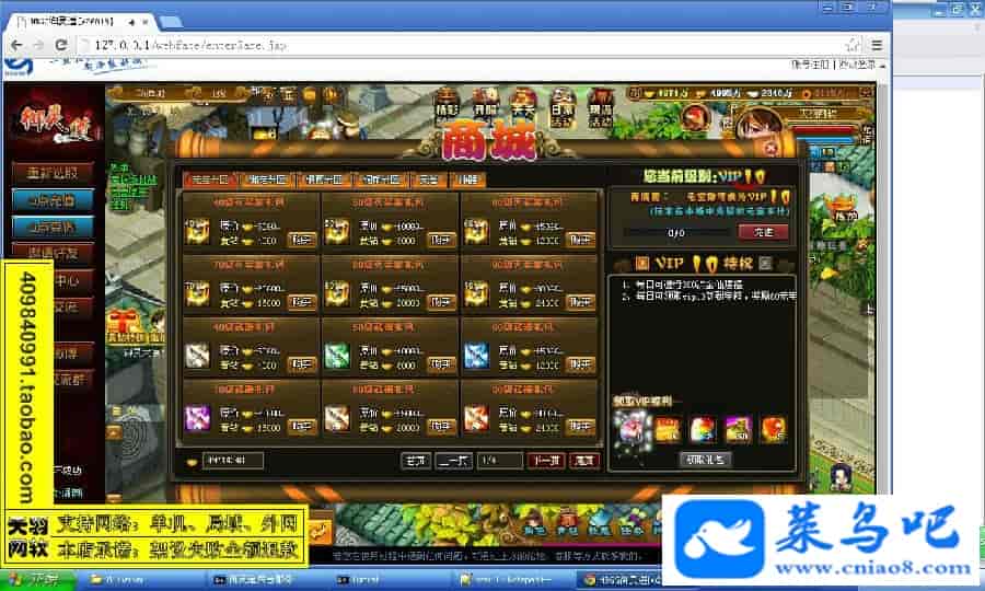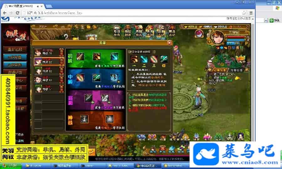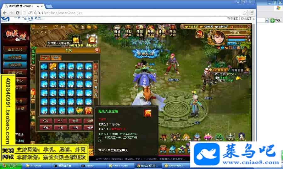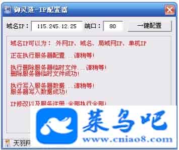 游戏名称:御灵道测试状态:单机、局域、外网 ( 架设外网仅支持独立服务器+IP )支持系统:服务端架设系统win2003/XP -32位;玩家系统无限制架设要求:请保证服务端所需端口全部开启且未被占用(系统问题请自行解决)配置要求:CPU双核+内存1G+硬盘10G(服务端D盘架设)架设难度:一键端架设说明:语音视频帐号注册:网站数据修改:GM管理工具、一键IP修改工具↓↓游戏更新↓↓1.增加一键IP修改工具图片展示: