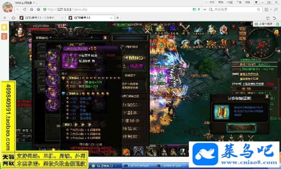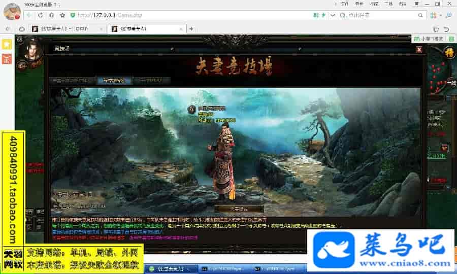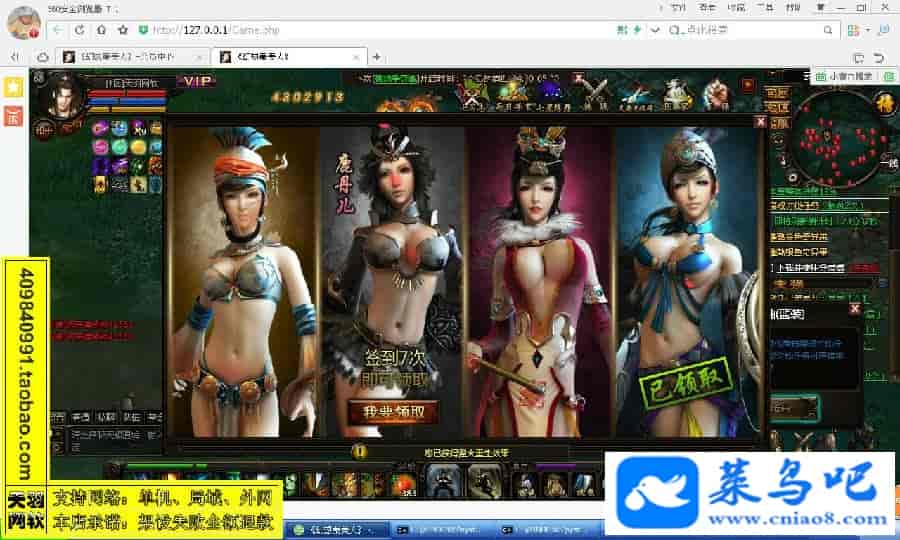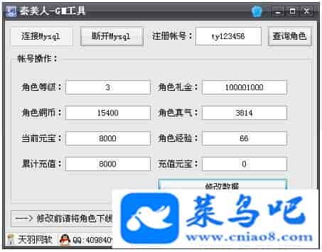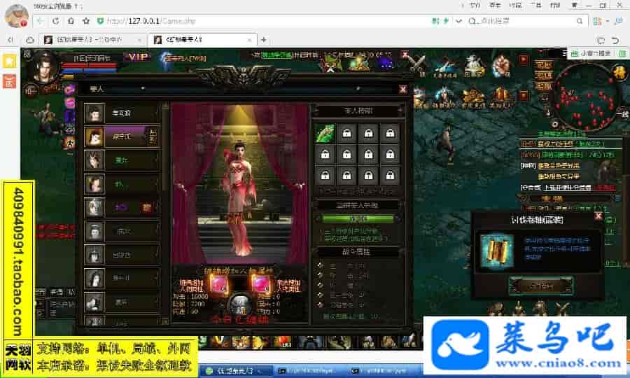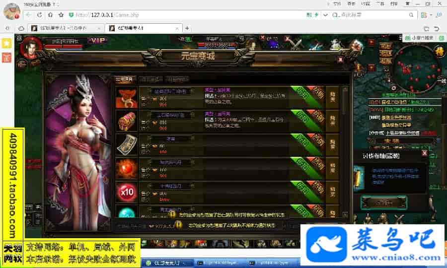 游戏名称:秦美人测试状态:单机、局域、外网 ( 架设外网仅支持独立服务器+IP )支持系统:服务端架设系统win2003/XP -32位;玩家系统无限制架设要求:请保证服务端所需端口全部开启且未被占用(系统问题请自行解决)配置要求:CPU双核+内存2G+硬盘10G(服务端D盘架设)架设难度:一键端架设指导:语音视频帐号注册:网站数据修改:GM管理工具、一键IP修改工具↓↓游戏更新↓↓1.增加GM管理工具2.增加一键IP修改工具图片展示:
