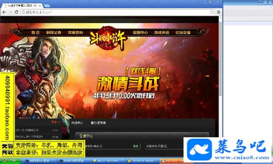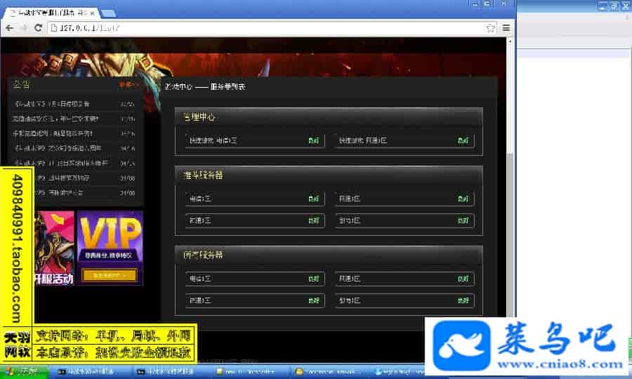 游戏名称:斗战水浒测试状态:单机、局域、外网 ( 架设外网仅支持独立服务器+IP )支持系统:服务端架设系统win2003/XP -32位;玩家系统无限制架设要求:请保证服务端所需端口全部开启且未被占用(系统问题请自行解决)配置要求:CPU双核+内存1G+硬盘10G(服务端D盘架设)架设难度:一键端架设说明:语音视频帐号注册:网站数据修改:GM工具、一键IP修改工具↓↓游戏更新↓↓1.增加一键IP修改工具2.增加GM管理工具3.增加网站主页图片展示: