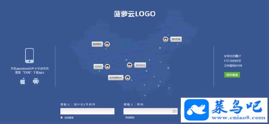 2、首页为登录引导页面,登录后会跳转到指定页面,给地方网站一种SNS社交的感觉