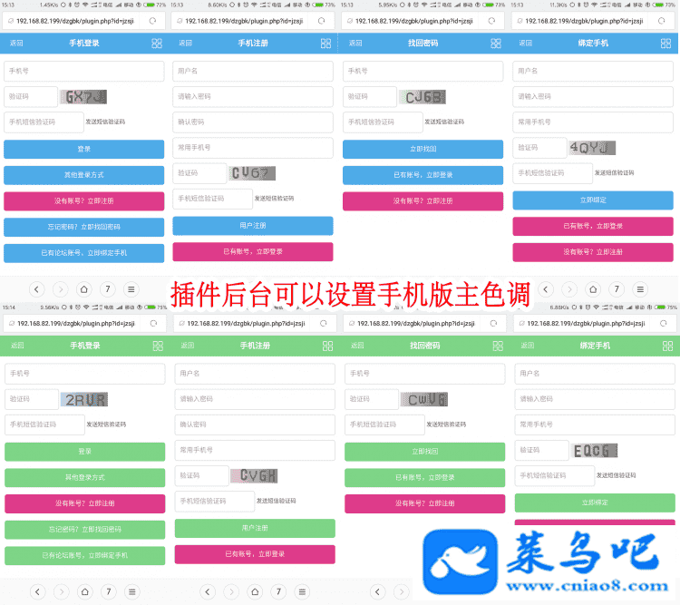 后台支持“手机版默认使用手机登录”开关设置,手机版默认使用手机登录,默认开启,关闭后默认使用discuz自带登录功能登录。