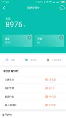 3、自带完善资料的任务,配合“七豆签到”,邀请好友可显示相应的任务。