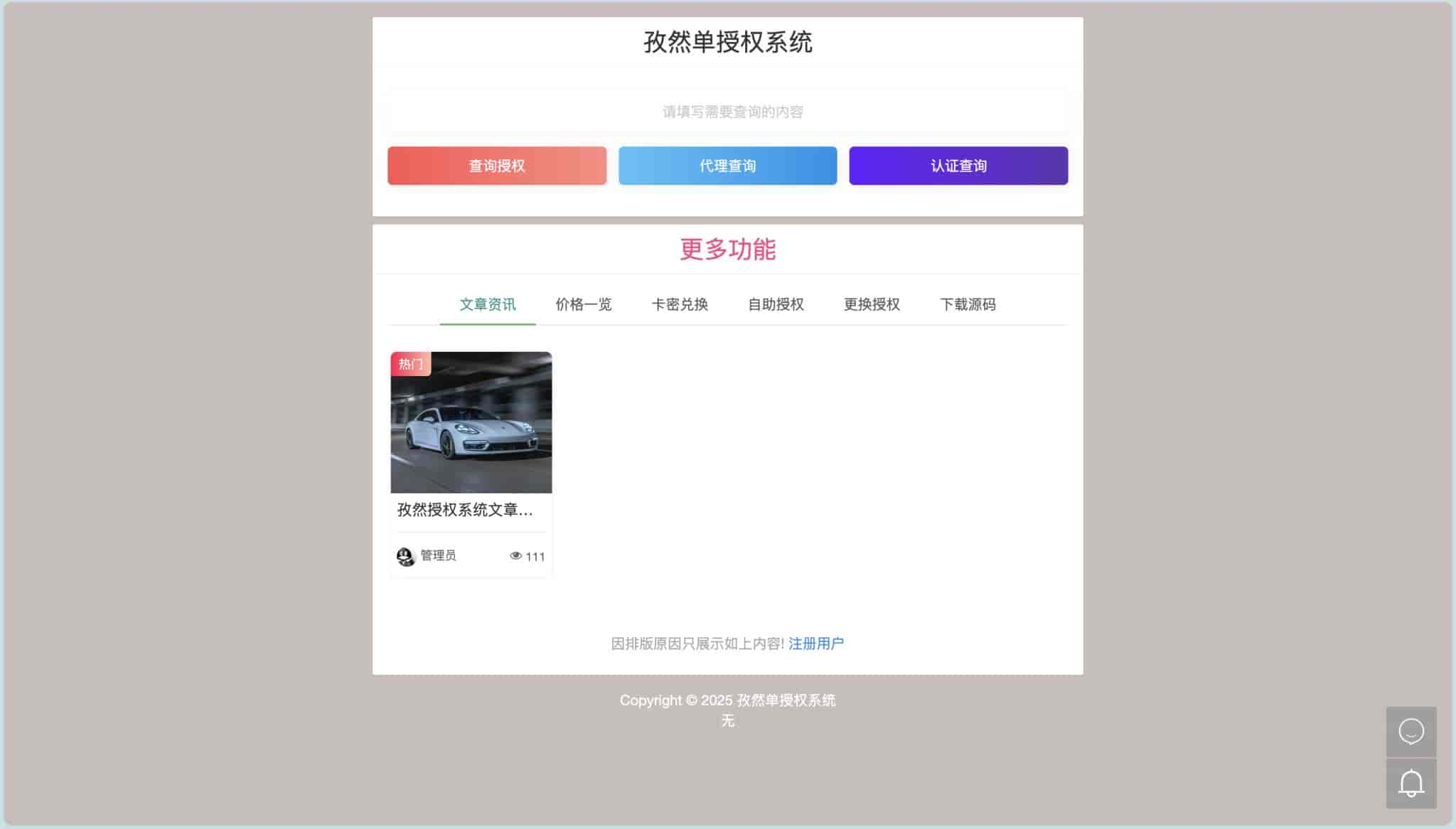 孜然单授权V1.0系统,延续了2022年开发的孜然多应用授权系统V2.0