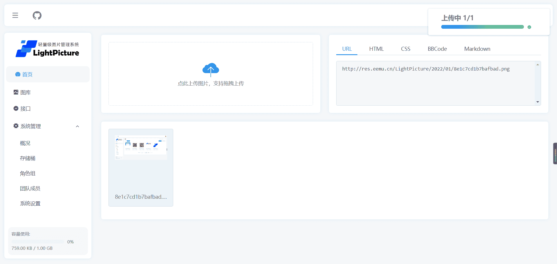 * 多图上传、拖拽上传、粘贴上传、上传预览、全屏预览、一键复制图片外链