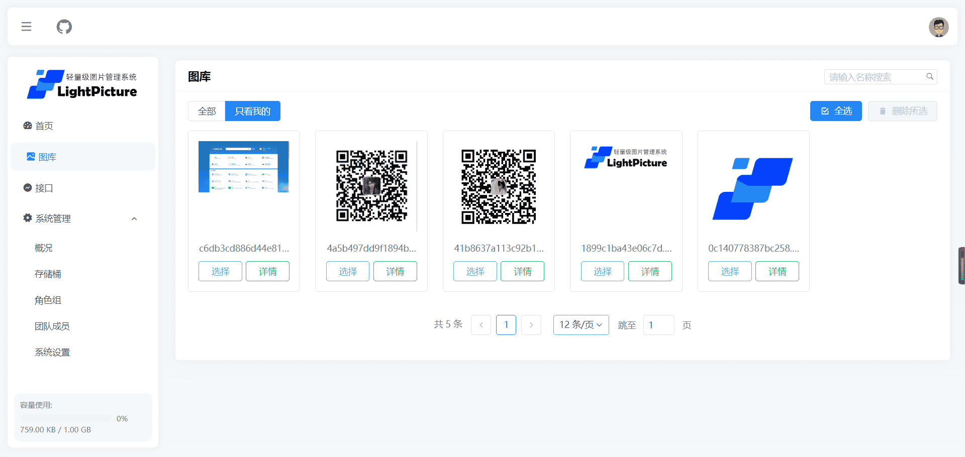 * 多用户管理、分组管理;不同分组用户控制不同的存储桶