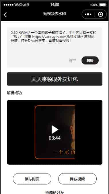 短视频去水印(抖音,快手等全网几十家平台都支持自带高速接口)
