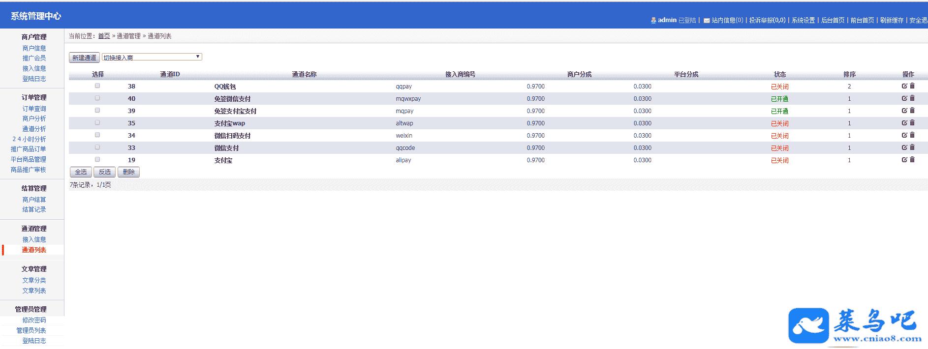 登陆后台-> 通道管理-》接入信息-》 手机支付宝接口 填写相关设置