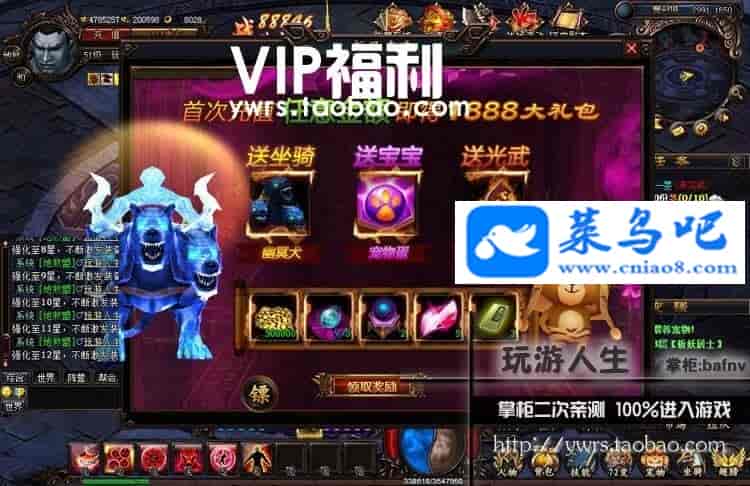 【游戏特色】无限元宝 金钱。游戏一键安装运行。无限元宝。72变系统。宠物,十阶九霄神龙坐骑。可外网!类似妖魔世界的游戏。可玩行强 !一键安装,免虚拟机。游戏占用空间小。掌柜试玩。非常不错。推荐给大家。