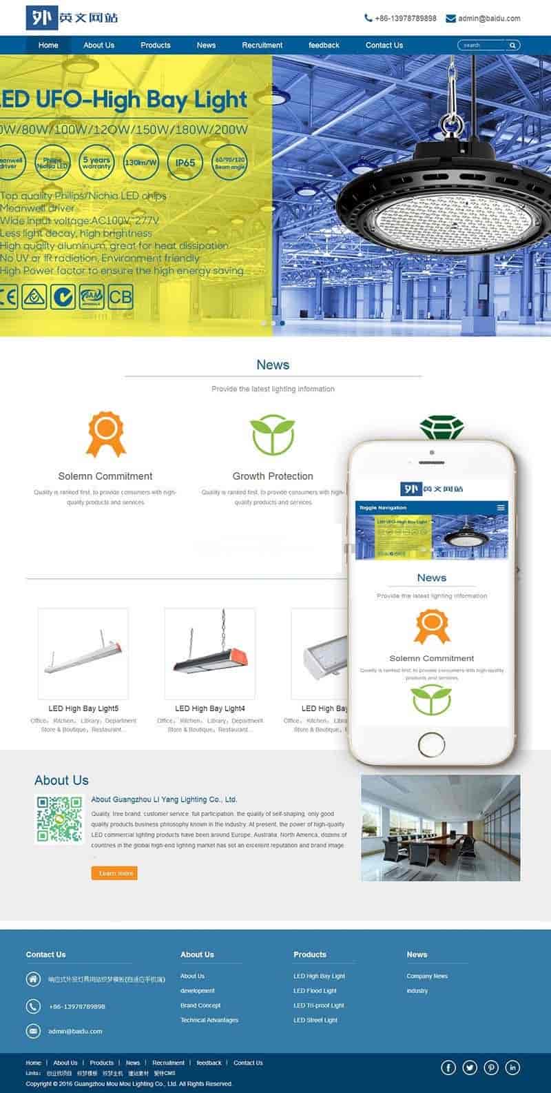 dedecms英文版蓝色响应式灯具外贸公司网站模板(自适应手机移动端)模板介绍:
