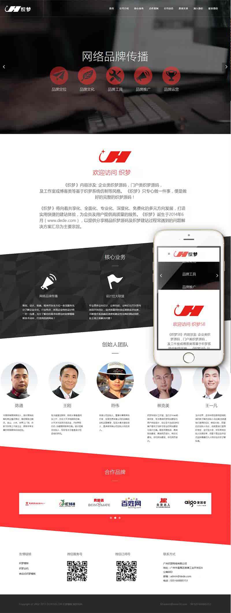 源码名称:HTML5响应式网络公司品牌推广类企业网站织梦模板(自适应手机端)整站带数据