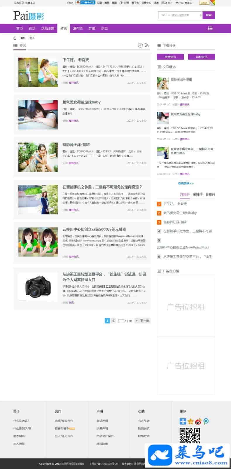 版本支持:discuzx3.0版本,discuzx3.1版本,discuzx3.2版本,包括网站首页,论坛首页,论坛列表页,论坛内容页,论坛瀑布流,拍摄活动列表,以及资讯列表页,资讯内容页。