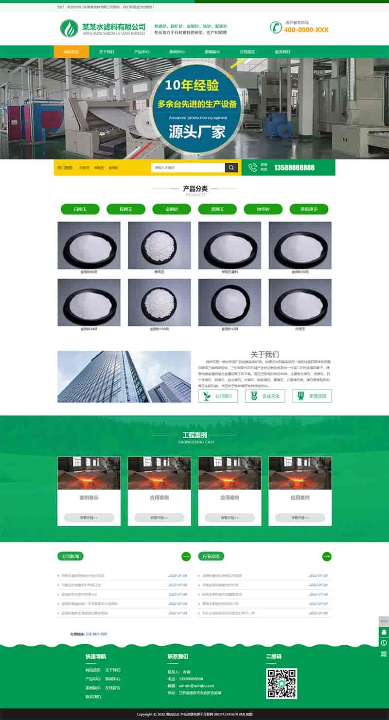 (自适应手机端)绿色HTML5简约时尚滤石过滤材料类pbootcms企业模板 滤料石材网站源码下载PbootCMS内核开发的网站模板,该模板适用于滤石过滤材料网站、滤料石材网站等企业,当然其他行业也可以做,只需要把文字图片换成其他行业的即可;自适应手机端,同一个后台,数据即时同步,简单适用!附带测试数据!友好的seo,所有页面均都能完全自定义标题/关键词/描述,PHP程序,安全、稳定、快速;用低成本获取源源不断订单!后台:域名/admin.php