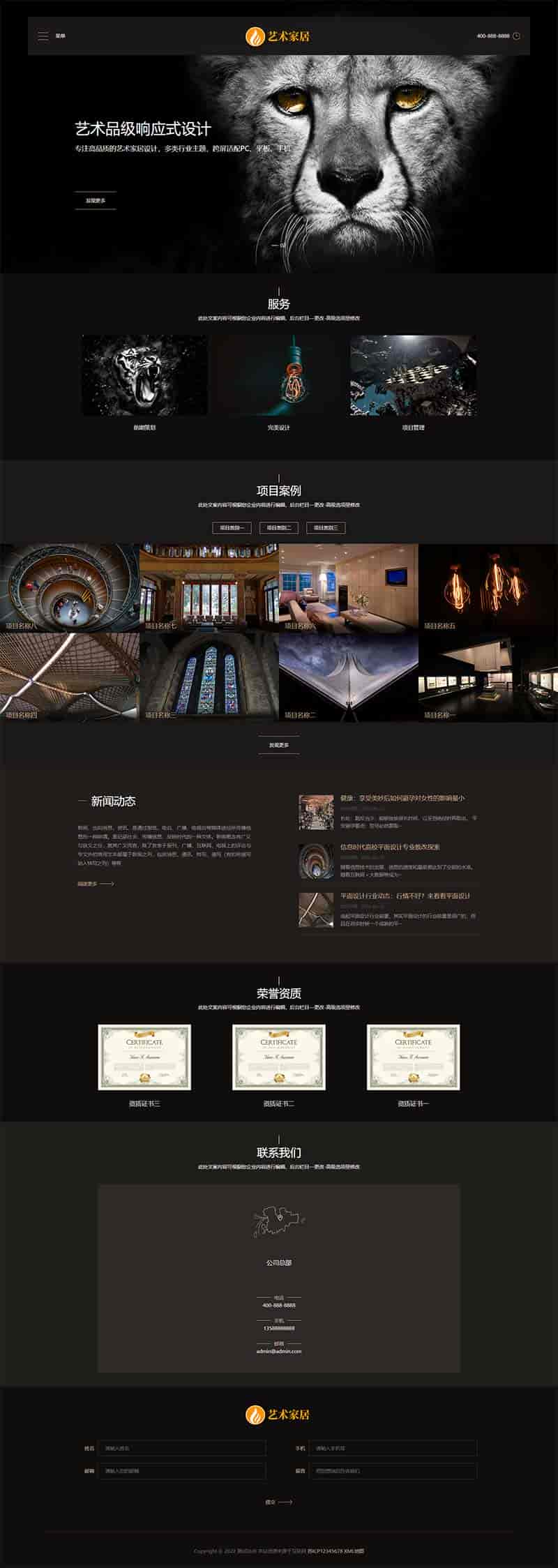 (自适应手机端)响应式艺术家居设计类网站pbootcms模板 HTML5家装设计类网站源码下载PbootCMS内核开发的网站模板,该模板适用于家居设计网站、家装设计网站等企业,当然其他行业也可以做,只需要把文字图片换成其他行业的即可;自适应手机端,同一个后台,数据即时同步,简单适用!附带测试数据!友好的seo,所有页面均都能完全自定义标题/关键词/描述,PHP程序,安全、稳定、快速;用低成本获取源源不断订单!后台:域名/admin.php