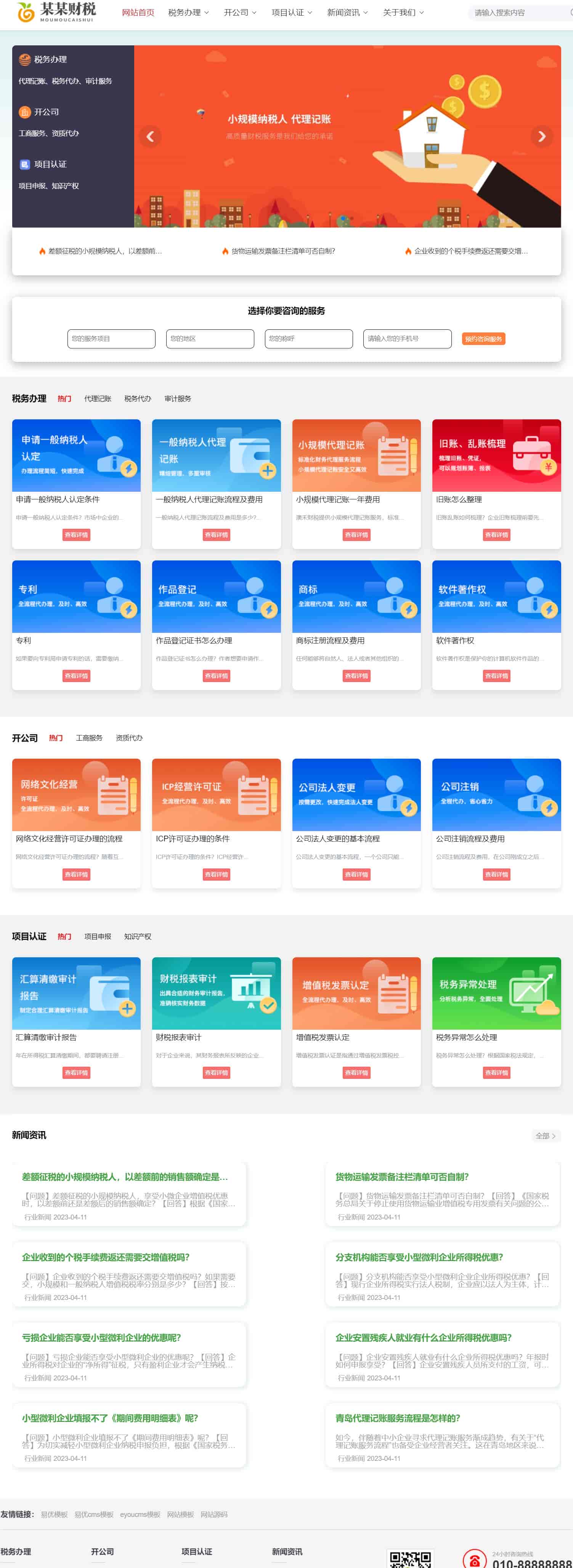 模板分类:公司注册,代理记账,审计税筹,财务公司,财税财务,代理记账