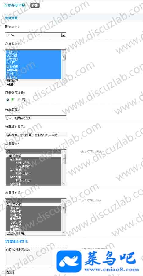 1.主要功能为在贴内插入百度分享代码,实现点击分享按钮后可见帖子内容;