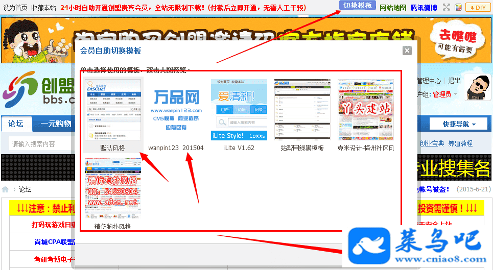 会员可自由切换风格,后台可以控制那些用户组可切换风格。