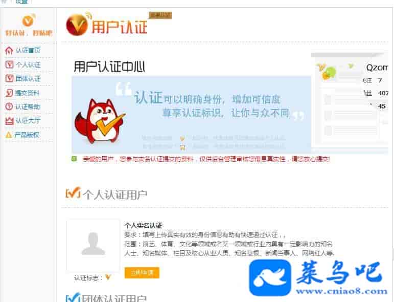 首创增加认证资料页面,已通过认证用户将锁定进入资料页面查阅认证资料.