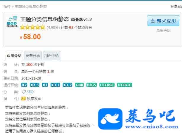 注意:主题分类与分类信息列表页伪静态仅仅是各自单独的列表页伪静态,如果同时设置有主题分类与分类信息的时候,那种交叉列表页没有实现伪静态;还有分类信息那些字段以及与热门精华等交叉查询列表页也没有实现伪静态.对那些有要求的就不要买了.